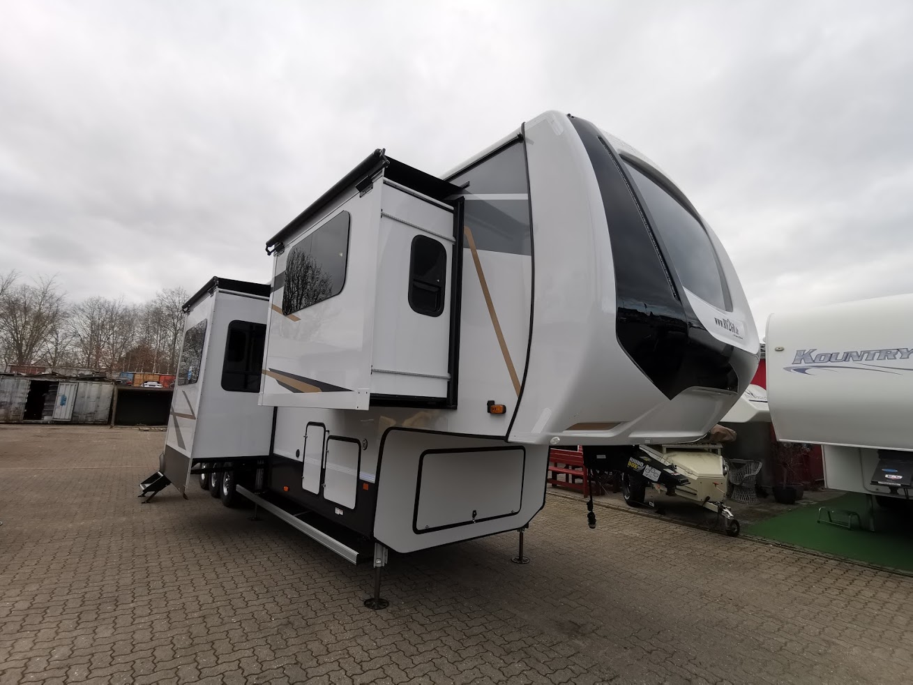 Cedar Creek 385 TH Toyhauler mit großer Heckgarage.