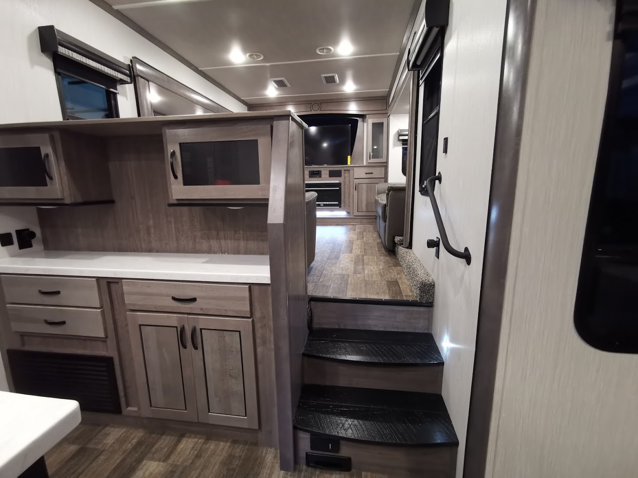 - Extra Wide 32” Entry Door with a Friction Hinge and 5 Tier MorRyde® Easy-Steps™